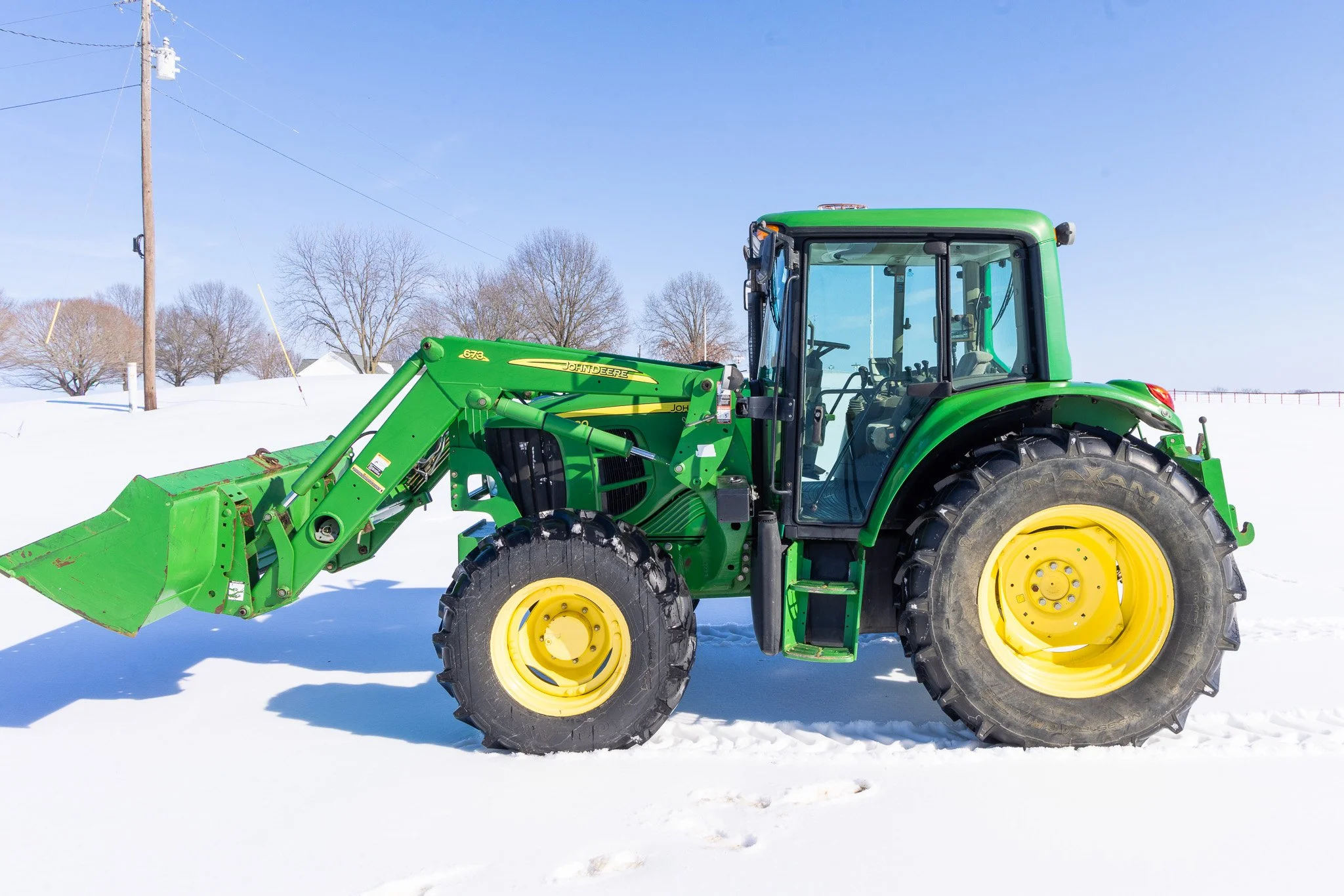 JOHN DEERE 6330 W/ 673 LOADER –7775 HOURS-TRACTOR #L06330H594492 SHUTTLE SHIFT JOYSTICK LOADER, QUAD RANGE, REAR WEIGHTS, INTERCHANGABLE PTO